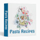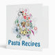 This pasta recipe binder features an abstract design of a chef with a big plate of pasta and meatballs. Text on front and spine is customizable.