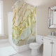Enjoy unique art in your bathroom. Earth tones of translucent beige, green and metallic gold. Swirls of liquid alcohol ink colors in beautiful pastel earth tones. Original abstract art by international artist Pauline Benjes. Beige Green Gold Pastel Abstract Shower Curtain.