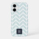 Chic patterned case features a subtle pastel chevron pattern in pale seaglass aqua and white. Personalize with your single initial monogram for a unique custom touch.