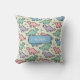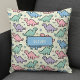 This personalized, playful and nostalgic nursery throw pillow features a pattern of cute, pixelated dinosaur silhouettes in soft, pastel '90s arcade colors like mint green, baby blue, pastel pink, and lavender hues, creating a fun yet gentle aesthetic.