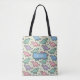 This personalized, playful and nostalgic tote bag features a pattern of cute, pixelated dinosaur silhouettes in soft, pastel '90s arcade colors like mint green, baby blue, pastel pink, and lavender hues, creating a fun yet gentle aesthetic.