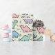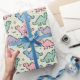 This personalized, playful and nostalgic wrapping paper features a pattern of cute, pixelated dinosaur silhouettes in soft, pastel '90s arcade colors like mint green, baby blue, pastel pink, and lavender hues, creating a fun yet gentle aesthetic.