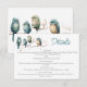 A soft and elegant baby shower details card featuring delicate pastel bird illustrations. Designed to complement your invitation suite, this insert provides space for registry information, dress code, parking, and special notes in a clear and stylish format.