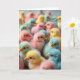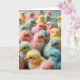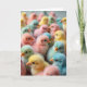 This design shows a close-up crowd of tiny, fluffy chicks packed tightly together, each tinted in soft pastel shades like blush pink, mint green, and sky blue. The shallow focus keeps the front and middle chicks sharp while the background fades into a gentle blur, making the group feel close and intimate. Soft, diffused lighting glides across their down, revealing little shifts from coral to aquamarine and giving their feathers a cloudlike look. Several chicks face one another with tender, attentive looks, as if sharing a quiet moment of friendship in the middle of the cluster 🐇. Others glance outward with glossy dark eyes, their small beaks and rounded heads adding to the sense of gentle curiosity. A short Easter greeting sits near the top in pale lavender lettering, with a smaller line beneath it in light gray, leaving the chicks to fill most of the space 🌷. In the lower right corner, one mint-green chick tilts its head toward a blush-pink chick, their down catching a soft highlight along the edges.