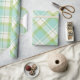Pastel blue and green spring plaid pattern wrapping paper