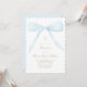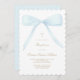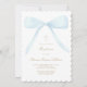 Yes, you can print on the back of your invitation for free! Most designs already have a corresponding design on the back that can be personalized using the Design Tool and going to Layers. This is a great way to communicate more information or further personalize your Pastel Blue Bow Baptism Invitation. The option is really up to you.