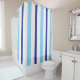 Pastel Blue Deep Blue White Summer Stripes Shower Curtain