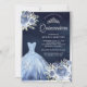 Pastel Blue Floral Gown Navy Silver Quinceanera Invitation