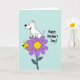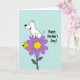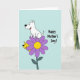 This card shows a large purple flower with a sunny yellow center taking up most of the scene, like a cheerful stage for two friendly animal characters ❤️. A white, cartoon-style dog with black outlines sits on one petal, smiling with perky ears as if posing proudly for someone it adores. A smaller yellow dog peeks from behind the flower, grinning with a curious look that feels like a shared inside joke between close companions. The background is a soft pastel blue, keeping the focus on the flower and the two dogs while giving the whole image an airy, calm setting. To the right of the flower, the words “Happy Mother’s Day!” appear in a flowing handwritten look, placed mid-height to balance the artwork. The text is dark for contrast, standing out clearly against the blue while leaving plenty of open space around it. The white dog leans forward slightly toward the hidden yellow dog, adding a gentle, affectionate energy to their playful arrangement 🌼. The purple petals fan outward in rounded shapes, with the yellow center drawn as a bright circular spot.