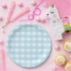 Pastel Blue Gingham Pattern Paper Plate