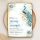 Pastel Blue Gold Floral Indian Peacock Wedding Invitation
