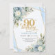 Pastel blue gold greenery luxe script 90 birthday invitation