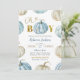 Pastel Blue Gold Oh Boy Pumpkin Baby Shower Invitation