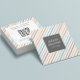 Pastel Blue Gray Gold Stripes QR CODE Square Business Card