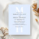 This modern wedding invitation features a soft pastel blue background with a clean monogram overlay. The minimalist layout creates a refined and elegant look. The simple typography adds a calm and stylish feel. It is easy to customize for any wedding theme.