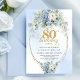 Pastel Blue Peonies Greenery Boho 80th Invite