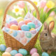Ideal for gift wrapping, home décor, or crafting charming Easter projects, this tissue paper features a watercolor illustration of pastel blue, pink, and yellow Easter eggs on a white background. The delicate design adds a touch of springtime cheer to any occasion.