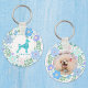 Pastel Blue Poodle Custom Floral Name & Photo Keychain