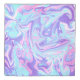 An abstract digital paint pour artwork featuring bright, pastel shades of light cyan blue, purple, and pink. The colours & textures are mixed together to create this psychedelic holo marble look.