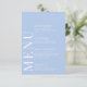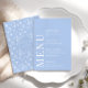 Pastel blue white simple floral wedding menu cards