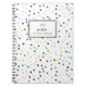 Customizable confetti notebook featuring pink, yellow, blue and black confetti dots pattern. Personalize by adding names or other details. These bright confetti notebook are perfect as a personalized gift.