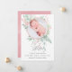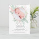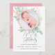Organic inspired greenery blush pink and mint pastel shades baby birth square shaped photo announcement card designed to be quickly and easily customized to your event specifics.