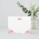 Pastel Blush Pink Floral Roses Script Monogram Note Card
