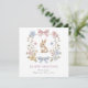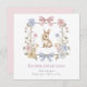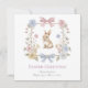 Celebrate the joy of spring and new beginnings with this enchanting Easter greetings card. Featuring a charming watercolor illustration of a fluffy bunny nestled within a delicate floral wreath adorned with soft pink and blue blossoms and elegant bows. The serene pastel color palette and whimsical design evoke a sense of gentle warmth and festive cheer, perfect for sending your heartfelt wishes to loved ones. This card is ideal for sharing your Easter blessings and spreading happiness during this special time of year.