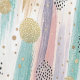A vibrant and modern abstract pattern wallpaper featuring vertical brushstrokes in soft pastel hues—pink, purple, teal, and beige—layered with playful geometric elements. Dotted ovals and teardrops bring bold contrast, while textured gold circles and scattered golden dots add sparkle and movement. This seamless design merges painterly textures with structured accents, ideal for those drawn to expressive, artistic, and contemporary aesthetics.