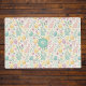 This pretty pastel placemat is perfect for Easter with eggs, ferns, and bunnies in spring colors and patterns. The yellows, pinks, peaches, sage greens, and baby blue colors add a soft, festive look to your Easter dinner or any spring meal. Your monogram appears in creamy white against a circle of soft mint green.