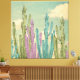 Modern Collage Wall Art. This one is of cactus in colors of lime green, pinks, and aqua blues with an aged clouded sky background. Fun, mod and eclectic ephemera. This is a flat surface with a smooth canvas finish. Fun, surreal art using a mix of collage and digital art techniques, with a vintage, mid-century retro feel. Cactus photo by Terry Katz at McBooboos