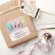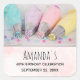 Birthday save the date stickers with a pretty pastel colored photograph. Featuring cake decorating items in pastel blue, pink, peach and yellow. Set upon a wood table with little colorful beads. Your personalized text written over a pink watercolor background.