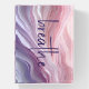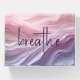 Soft, wavy layers in pink and light purple shades create an abstract and calming visual effect with "breathe" text.