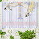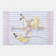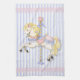 Cute circus carousel pony with flowing mane and tail. Pastel pink and Lavender blue flowers and pink heart accents. Pretty pastel blue stripe background.