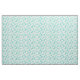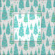 A winter pattern of illustrated pastel blue and green Christmas trees arranged into a never ending forest of festive trees. They are decorated with garland and stars.