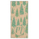 A winter pattern of illustrated pastel blue and green Christmas trees arranged into a never ending forest of festive trees. They are decorated with garland and stars.