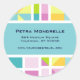 A unique sticker that borrows its style from Mondrian. Pastel colored squares and triangles come together and make a soft grid. Your name and most important contact information stand out against the turquoise panel. Great as envelope seals, return address labels or sealing customer purchases. Available in alternate colors with matching products.