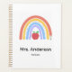 A cute teacher spiral planner featuring a pastel colored rainbow accented with a pencil and a red apple. Personalize with the teacher's name and grade.