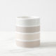 This mug showcases a refined design featuring horizontal stripes in a subtle blend of neutral tones. The design presents a sequence of bands in varying shades of taupe, accented by crisp white lines that bring a clean and balanced aesthetic to the piece. The pattern exudes a sense of calm and sophistication, making it a versatile choice for any beverage occasion.
