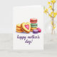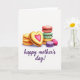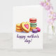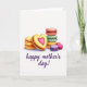 This card shows an assortment of delicate sandwich cookies arranged on a bright white background, with soft lighting that makes the scene feel gently affectionate ❤️. In the center sits a heart-shaped treat with a golden-yellow shell and a fuchsia-pink filling, like a sweet little symbol of closeness. To one side, a tall stack alternates coral pink and mint green rounds, their ruffled edges touching as if they’re leaning in together. Nearby, a shorter stack of warm golden-yellow pieces shows caramel-toned centers, adding a cozy, friendly warmth to the palette. A few single cookies in deep purple and bright fuchsia are scattered around, giving the layout a casual, just-shared feel 🌼. The textures stand out clearly, from glossy tops to the tiny ridges along the bottoms, and faint shadows sit beneath each piece. Along the lower area, the words “happy mother’s day!” appear in a flowing style in deep violet, centered under the treats. The heart-shaped cookie’s bright pink center is framed by the golden shell, with a soft shadow falling slightly to the right.