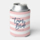 Pastel Coral Pink & White Stripes Blue Team Bride Can Cooler