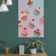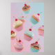 This adorable artwork features a delightful assortment of pastel-colored cupcakes arranged against a soft pink background. Each cupcake is decorated with charming details—fluffy frosting, sprinkles, cherries, and playful color combinations—creating a sweet and whimsical pattern perfect for dessert lovers of all ages. The gentle pastel palette makes the design visually pleasing and suitable for both children’s and adults’ décor.