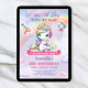 Pastel Cute unicorn with flowers third Birthday Invitation