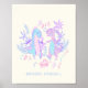 Pastel Dancing Dinosaurs Purple Blue Personalized Poster
