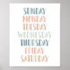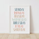 Introduce your kiddo to the days of the week with this hand-lettered watercolor poster. Decorate a wall in your little one's nursery, bedroom, or playroom with this educational print to encourage learning everyday.