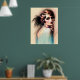 Pastel Drawing 1920's Flapper Girl Blue Poster