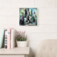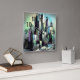 Pastel Drawing Futuristic City Abstract Square Wall Clock