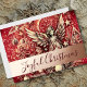 Pastel Drawing Red Christmas Angel Foil Holiday Card