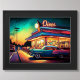 Pastel Drawing Vintage Roadside Diner and Car Poster