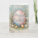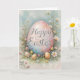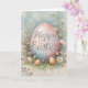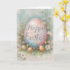 Share Easter blessings with this charming card featuring intricately designed pastel Easter eggs nestled in spring blooms. The soft hues and rustic background give it a timeless feel, perfect for gifting to friends and family. It also makes a lovely addition to seasonal home decor.